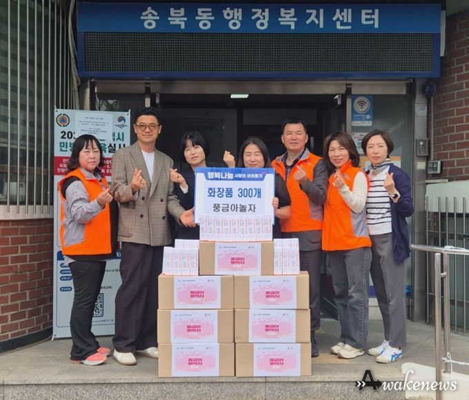 어웨이크뉴스 오경하 기자 | 풍금아놀자는 지난 22일 화장품 300개를 평택시 송북동 행정복지센터에 전달했으며, 기부된 화장품은 송북동 내 취약계층 가구에 전달될 예정이다.