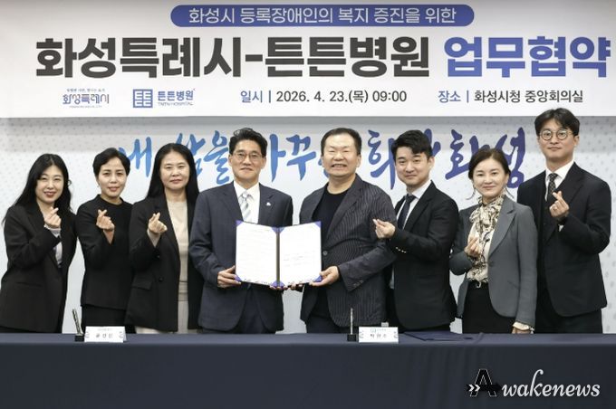 어웨이크뉴스 오경하 기자 | 화성특례시는 23일 본관 2층 중앙회의실에서 튼튼병원과 화성시 등록장애인의 건강한 생활 지원과 삶의 질 향상을 위한 업무협약을 체결했다.