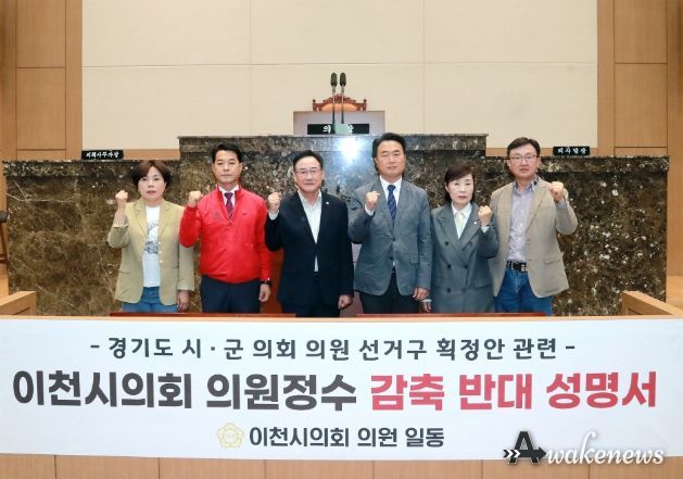 어웨이크뉴스 오경하 기자 | 이천시의회 의원 일동은 23일 본회의장에서 “경기도 시·군의원 선거구획정안”과 관련해 이천시 의원 정수 감축에 반대하는 공식 입장을 밝혔다. 최근 경기도 시·군의원 선거구획정위원회가 경기도의회에 제출한 초안에는 이천시 의원정수를 기존보다 1명 축소하는 방안이 포함된 것으로 알려졌다.