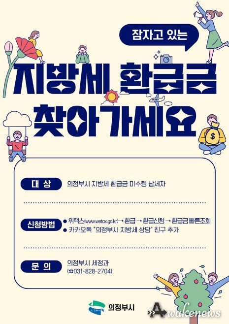 어웨이크뉴스 오경하 기자 | 의정부시는 납세자가 아직 찾아가지 않은 지방세 환급금을 돌려주기 위해 5월 말까지 ‘지방세 환급금 일제정리 기간’을 운영한다.