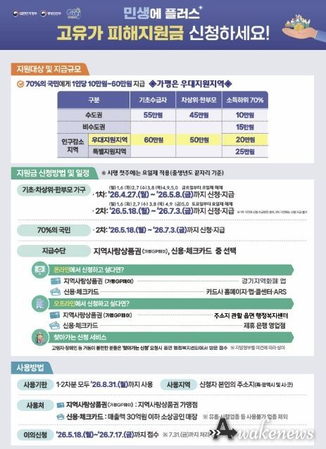 군 관계자는 “가평군은 인구감소 우대 지역으로 분류돼 지원 규모가 큰 만큼, 대상 군민들이 한 분도 빠짐없이 혜택을 받을 수 있도록 신청 안내와 현장 대응에 만전을 기하겠다”고 말했다.