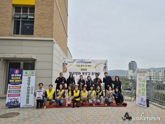 어웨이크뉴스 오경하 기자 | 양평청소년문화의집은 지난 22일 양평중학교에서 지역 연계 사업 ‘양청문서포터즈’를 통해 ‘학교평화 등굣길 음악회’를 운영하고 학교폭력 예방 캠페인을 진행했다.