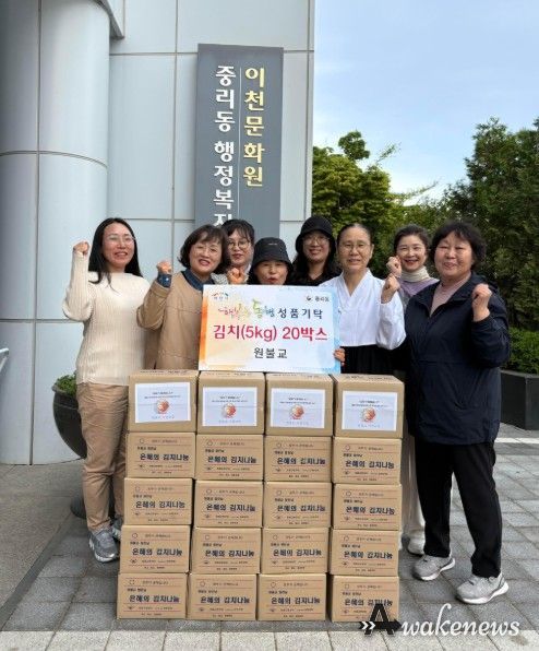 어웨이크뉴스 오경하 기자 | 이천시 중리동행정복지센터는 원불교가 지역 내 어려운 이웃들을 위해 김치(5kg) 20박스를 기탁하며 따뜻한 나눔을 실천했다고 밝혔다. 이번 기탁은 경제적 어려움과 돌봄 공백 등으로 일상생활에 어려움을 겪고 있는 취약계층 이웃들에게 조금이나마 힘이 되고자 마련됐다.