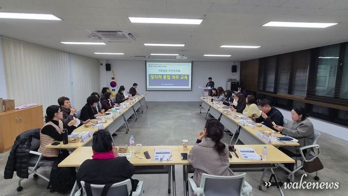 어웨이크뉴스 오경하 기자 | 시흥시 거북섬동은 오는 6월 3일 실시되는 제9회 전국동시지방선거를 앞두고 주민자치회와 통장협의회를 대상으로 정치적 중립의무 교육을 지난 4월 21일과 23일 두 차례에 걸쳐 동 행정복지센터에서 실시했다.