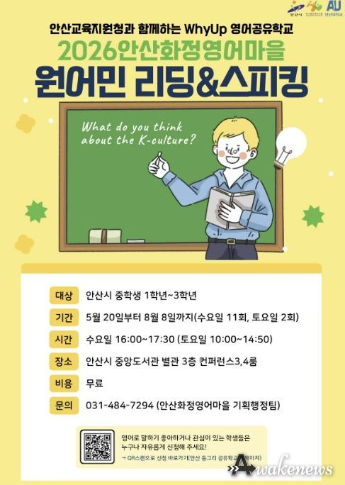 이번 프로그램은 ‘안산 동그리 공유학교’를 기반으로 운영되는 WhyUp 영어공유학교 사업의 일환으로 추진된다. 참가 신청은 27일 오전 9시부터 오는 30일 오후 6시까지 경기공유학교 누리집에서 온라인으로 하면 된다.