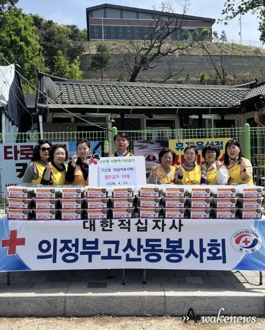 어웨이크뉴스 오경하 기자 | 의정부시 고산동주민센터는 4월 23일 고산동 적십자봉사회(회장 이미애)가 직접 만든 열무김치 50통을 취약계층을 위해 전달했다고 밝혔다.