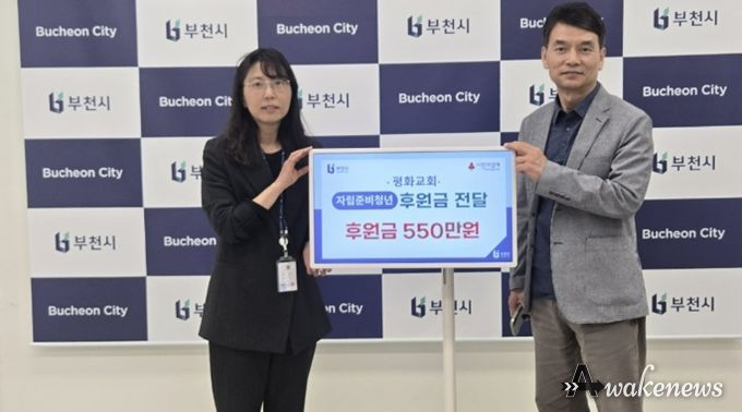 어웨이크뉴스 오경하 기자 | 부천시는 지난 24일 중동 힐스테이트 프로그램실에서 ‘평화교회 자립준비청년 돕기 후원금 전달식’을 열었다. 이번 전달식은 평화교회가 지역 내 아동복지 향상과 나눔 문화 확산을 위해 마련됐다.
