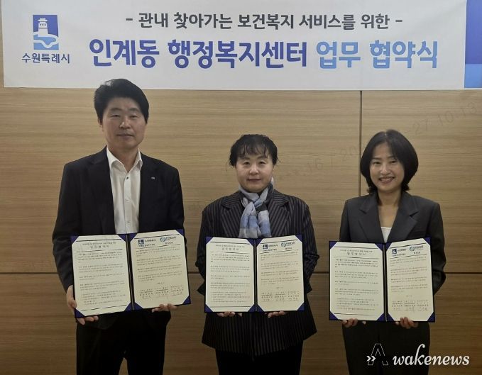 어웨이크뉴스 오경하 기자 | 수원시 팔달구 인계동은 지난 24일, 지역사회보장협의체과 한전MCS(주) 경기지사 및 직할지점과 함께 취약계층 발굴과 지속적인 인적안전망 활동 참여를 위한 업무 협약을 체결했다.