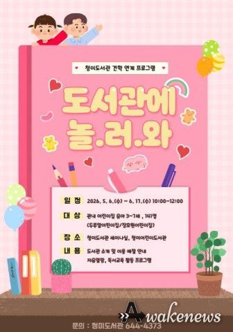 어웨이크뉴스 오경하 기자 | 이천시 청미도서관은 오는 5월 6일부터 6월 17일까지 관내 어린이집 유아를 대상으로 도서관 견학 연계 프로그램 ‘도서관에 놀.러.와’를 운영한다.