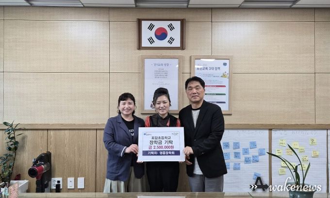 어웨이크뉴스 오경하 기자 | 포천시 영중면 영중장학회는 지난 27일 지역 인재 양성을 위해 포담초등학교와 영중중학교를 방문해 장학금을 전달했다.