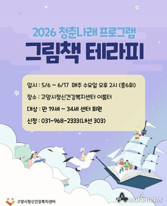 어웨이크뉴스 오경하 기자 | 고양시정신건강복지센터는 청년들의 정서적 안정과 자기 이해를 돕기 위해 2026년 청춘나래 집단프로그램 ‘그림책 테라피’를 오는 5월 6일부터 운영한다.