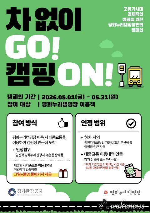 어웨이크뉴스 오경하 기자 | 경기관광공사가 다음달 1일부터 한 달간 직영중인 임진각 평화누리캠핑장에서 고유가 시대에 대응하고 친환경 캠핑 및 이동 문화 확산을 위해 이용객 참여형 ESG 캠페인 2종을 추진한다.