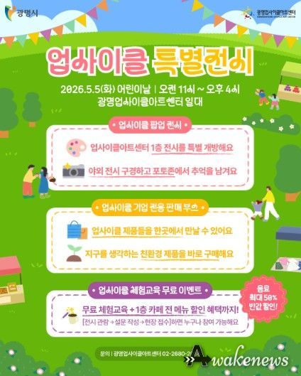 어웨이크뉴스 오경하 기자 | 광명시 광명업사이클아트센터는 오는 5월 5일 어린이날을 맞아 자원순환 가치를 예술과 체험으로 즐기는 ‘업사이클 특별전시’를 운영한다.