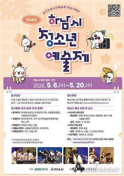 어웨이크뉴스 오경하 기자 | 하남시가 주최하고 하남시청소년수련관이 주관하는 ‘2026 제34회 하남시청소년예술제’가 오는 6월 13일 하남시청소년수련관에서 개최된다.