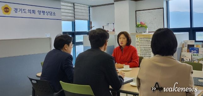 어웨이크뉴스 오경하 기자 | 경기도의회 기획재정위원회 부위원장 이혜원 의원 (국민의힘, 양평 2) 은 27일 양평상담소에서 경기도청 기획담당관 관계자와 함께 '경기도 행정기구 및 정원조례 개정' 관련 업무보고를 받고, 국가지원 지방도 건설 사업 및 지방채 발행 관련한 주요 현안을 점검했다.