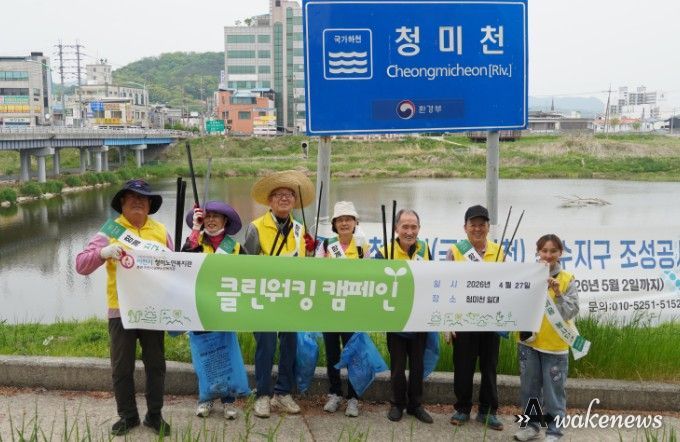 어웨이크뉴스 오경하 기자 | 이천시는 이천시 청미노인복지관(관장 최대열)의 선배시민 자원봉사단 ‘그린이음’이 지난 4월 27일 청미천 일대에서 클린워킹, 일명 ‘줍깅’ 캠페인을 진행했다고 밝혔다.
