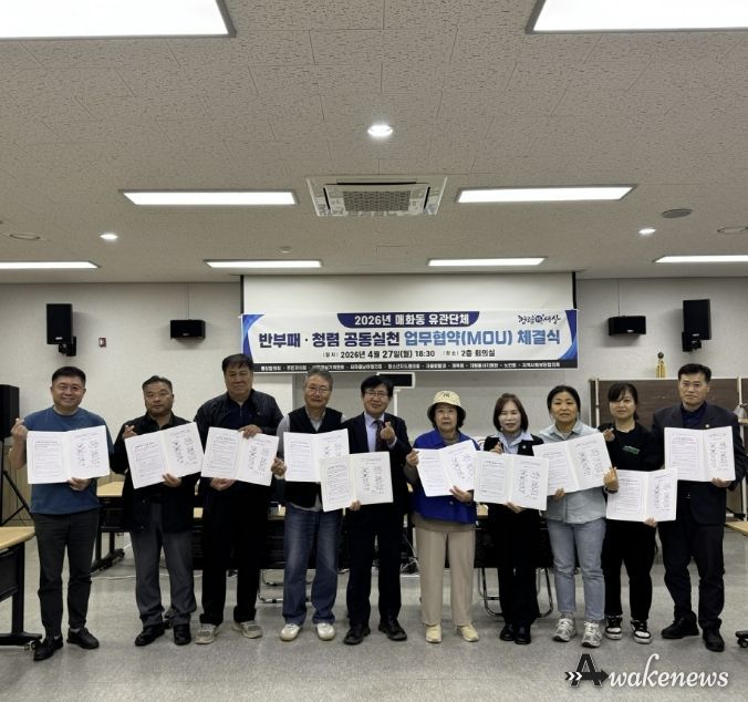 이날 협약식에는 매화동 행정복지센터와 10개 관계단체가 참여했으며, 청렴한 지역사회를 구현하고 민관 협력을 기반으로 청렴 분위기를 확산하기 위해 마련됐다.