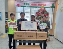 어웨이크뉴스 오경하 기자 | 남양주시는 지난 13일 한국농어촌민박협회 남양주시지회(회장 김정기)가 지역 내 취약계층 지원을 위해 300만 원 상당의 식료품을 남부희망케어센터에 전달했다고 밝혔다. 이번 후원은 경제적 어려움을 겪는 취약계층 가정의 생활 안정을 돕고, 따뜻한 나눔을 실천하고자 마련됐다. 기탁된 식료품은 남부희망케어센터를 통해 지역 내 도움이 필요한 이웃들에게 전달될 예정이다. 한국농어촌민박협회 남양주시지회는 농어촌 민박 사업을 운영하는 회원들의 권익 보호와 소득 증대를 통해 지역경제 활성화에 기여하고 있으며, 매년 취약계층을 위한 기부와 나눔 활동을 통해 사회적 가치 실현에 앞장서고 있다. 김정기 회장은 “겨울철 어려운 이웃들에게 따뜻한 위로가 되기를 바란는 마음으로 준비했다”며 “앞으로도 지역과 함께하는 나눔 실천을 지속해 나가겠다”고 말했다. 시 관계자는 “지역의 어려운 이웃을 위해 따뜻한 나눔을 실천해 주신 한국농어촌민박협회 남양주시지회에 깊이 감사드린다”며 “이번 후원이 취약계층의 일상에 실질적인 도움이 되고, 지역사회에 나눔 문화가 더욱 확산되는 계기가 되길 바란다”고 말했다.