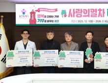 어웨이크뉴스 오경하 기자 | 용인특례시는 19일 지역 내 기업·단체가 ‘사랑의 열차 이어달리기’에 동참하며 나눔 문화가 확산하고 있다고 밝혔다. 로지시스템(주) 등 6개 기업·기관·단체 관계자들은 이날 시청 시장실에서 열린 ‘사랑의 열차 이어달리기’ 전달식에서 성금과 물품을 전달했다. 이날 전달식에서는 ▲로지시스템(주)(성금 2,000만원) ▲용인도시공사(성금 1,400만원) ▲동백정형외과(성금 500만원) ▲(주)지큐에너지(성금 500만원) ▲(주)애플트리(성금 300만원)▲원삼친환경쌀작목회(560만원상당 친환경 백미 10kg 100포)가 사랑의 열차에 동참했다. 이상일 시장은 “경기가 어려워지면서 모금액이 줄어드는 추세인데, 용인은 온정의 손길이 1등이라고 표현할 수 있을 정도로 매년 목표치를 초과 달성하고 있다”며 “지난해도 목표한 금액을 초과 달성했고, 올해도 1월 둘째 주까지 94.7%를 넘어 목표치를 초과할 달성할 수 있을 것으로 생각한다”고 했다. 이 시장은 “삼성전자와 SK하이닉스가 1000조원을 투자하는 초대형 반도체 프로젝트가 진행 중인데, 2029년부터는 세수도 대폭 늘어날 것으