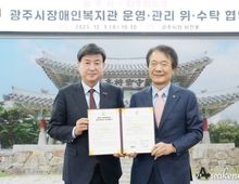 어웨이크뉴스 오경하 기자 | 광주시는 3일 시청 비전홀에서 사회복지법인 따뜻한동행과 ‘광주시장애인복지관 운영·관리 위·수탁 협약’을 체결하고 2026년 상반기 개관을 목표로 복지관 운영 계획과 개관 준비 절차를 공식화했다. 이날 협약식에는 방세환 광주시장, 김종훈 따뜻한동행 이사장 및 상임대표 등 관계자 11명이 참석했다. 특히, 복지관 운영의 전문성과 안정성을 확보하기 위해 구성된 ‘개관준비단’도 자리해 지역사회 연계 체계 구축 및 실무적 협력 방안을 논의했다. 이번 협약에 따라 광주시는 복지관 개관 준비는 물론 향후 운영 과정에 필요한 행정·재정적 지원을 맡게 된다. 수탁기관인 따뜻한동행은 2010년 설립 이후 15년간 축적해 온 사회복지 분야의 전문성과 운영 노하우를 바탕으로 지역사회 중심의 포용적 장애인 복지서비스 제공 모델을 구현한다는 계획이다. 김종훈 따뜻한동행 이사장은 “광주시장애인복지관을 누구도 소외되지 않는 포용적 공간으로 조성해 장애인과 비장애인이 함께 어울리는 새로운 복지관 모델로 발전시키겠다”고 밝혔다. 이에 대해 방 시장은 “광주시장애인복지관이 지역 장애인의 삶과