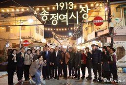 어웨이크뉴스 오경하 기자 | 의왕시는 11월 21일 부곡시장길 24번지 일원에서 ‘의왕도깨비시장 아케이드 설치 공사 착공식’을 개최했다. 이날 착공식에는 김성제 의왕시장과 김학기 시의회 의장, 시의원, 도의원, 지역 상인, 시민 등 100여 명이 참석해 의왕도깨비시장의 새로운 도약을 기원하는 뜻깊은 시간을 가졌다. 의왕도깨비시장은 지난해 11월 기록적인 폭설로 인해 시장 내 그늘막이 붕괴된 이후 시장을 찾는 방문객과 상인들은 눈, 비, 폭염 등 기상 상황에 그대로 노출되면서 불편을 겪어왔다. 이에, 시는 기존 그늘막 보다 견고하면서도 전통시장 현대화에 걸맞은 디자인이 적용된 의왕도깨비시장 내 아케이드(아치형 지붕이 설치된 보행 공간)설치 사업을 추진하고 이날 착공식을 개최하게 됐다. 내년 3월 준공을 목표로 추진되는 이번 공사에는 경기도 특별조정교부금 30억원과 시비 13억원 총사업비 43억 원이 투입되며, 시설은 전체 길이 190m, 높이 7.8m 규모로, 아케이드와 캐노피가 병행 설치된다. 특히, 시는 이번 사업을 통해 시장 중앙부에 높이 9m의 규모의 광장 기능을 수행하는 개방형