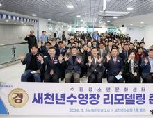 어웨이크뉴스 오경하 기자 | 수원특례시의회는 24일 청소년문화센터 내 새천년수영장에서 열린 '새천년수영장 리모델링 공사 준공식'에 참석해 준공을 축하했다. 이번 준공식은 노후화된 수영장을 전면 리모델링해 보다 쾌적하고 안전한 환경으로 개선한 것을 기념하기 위해 마련됐다. 새천년수영장은 향후 시범운영을 거쳐 시민들에게 개방될 예정이다. 이날 행사에는 이재식 의장을 비롯해 김정렬 부의장(더불어민주당, 평·금곡·호매실), 더불어민주당 교섭단체 대표 김동은 의원(더불어민주당, 정자1·2·3), 기획경제위원회 장정희 위원장(더불어민주당, 권선2·곡선), 예산결산특별위원회 오세철 위원장(더불어민주당, 파장·송죽·조원2) 등 의장단과 시의원, 관계자와 시민들이 참석해 준공을 함께 축하하고 시설을 둘러봤다. 이재식 의장은 “오랜 기다림 끝에 새천년수영장이 더욱 쾌적하고 안전한 모습으로 새롭게 단장된 것을 뜻깊게 생각하며, 공사 기간 동안 불편을 감내해 주신 시민과 관계자들께 감사드린다”며 “수원특례시의회는 시민 누구나 가까운 곳에서 건강한 일상을 누릴 수 있도록 체육 환경 조성에 더욱 힘쓰겠다”고 밝혔다.