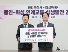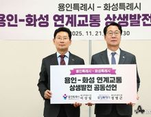 어웨이크뉴스 오경하 기자 | 화성특례시와 용인특례시는 21일 고양시청 백석별관 투자회의실에서 ‘화성-용인 연계교통 상생발전 공동선언문’을 발표하고, 반도체 메가시티의 핵심 축으로서 양 도시가 긴밀히 협력할 것을 천명했다. 이번 공동선언은 양 도시가 대한민국의 미래 성장동력인 반도체 산업의 경쟁력을 극대화하고, 시민 이동권을 획기적으로 개선하기 위한 교통 인프라 확충 방안을 담고 있다. 그동안 지리적 인접성에도 불구하고 불충분한 교통 연계로 인해 시민 불편과 공동발전의 제약이 컸다는 점에서, 이번 협력 선언은 도시 간 경계를 넘은 새로운 연대의 신호탄으로 평가받고 있다. 연계 도로망 확충으로 산업 물류 및 출퇴근 환경 개선 양 특례시는 앞으로 광역 도로망을 체계적으로 확충해 산업 물류 흐름을 원활히 하고, 시민의 출퇴근 여건을 개선하는 데 공동 노력을 기울이기로 했다. 핵심 협력 과제로는 ▲용인 첨단시스템반도체 국가산단과 화성 동탄2지구를 직접 연결하는 ‘남사터널’ 신설 추진, ▲국지도 84호선(중리~천리), 국지도 82호선(장지~남사) 등 핵심 도로의 조속한 개통을 위한 행정·재정 협력체계 구축 등이 포함된다. 특히, 화성특례시에서는‘남사터널 신설’을 추진하
