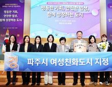 어웨이크뉴스 오경하 기자 | 파주시는 지난 26일 성평등가족부와 ‘여성친화도시 지정 협약’을 체결하고, 지난 5년간의 성과를 기반으로 ‘성 평등한 도시’조성을 위해 힘차게 도약할 것이라고 밝혔다. ‘여성친화도시’는 지역 정책을 수립·추진·평가하는 과정에 여성과 남성이 평등하게 참여할 수 있는 기반을 마련하고, 돌봄 부담으로 사회활동이 상대적으로 제한된 여성의 역량을 강화해 참여를 확대하기 위해 도입한 제도다. 시는 지난 2019년 '파주시 여성친화도시 조성에 관한 조례'를 제정했으며, ▲성평등 정책 추진 기반 구축 ▲여성의 경제·사회 참여 확대 ▲지역 사회 안전 증진 ▲가족친화 환경 조성 ▲여성의 지역사회 활동 역량 강화 등을 실현하기 위해 발굴한 특화사업의 우수성을 인정받아 2020년 12월 여성친화도시로 신규 지정받았다. 지난 5년 동안 파주시는 ▲공무원·시민 대상 성인지 교육 확대 ▲주기적인 성인지 통계 구축 ▲시민참여단, 여성취업지원 민관협의체, ‘젠더 거버넌스’, ‘안전 거버넌스’운영 ▲여성주의 구술채록단, ‘평화를 이야기하는’여성 강사단, ‘젠더폭력 예방 교육’강사단 양성 ▲파주형 여성친화거리 조성