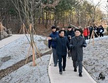 어웨이크뉴스 오경하 기자 | 의정부시는 2026년 병오년 새해를 맞아 1월 8일 녹지 인프라 확충을 위한 주요 사업 대상지를 현장 점검했다. 점검 대상지는 ▲장암동 실외정원 ▲용현산업단지 완충녹지 산책로 및 가로숲길 조성 사업지 ▲민락동 감성쉼터 등이다. 이번 점검은 도심 속 쉼터와 실외정원 확충, 안전한 보행환경 조성, 산림 명소 발굴 등 녹지 인프라 조성 사업의 추진 현황을 점검하고, 시민들이 일상에서 녹지 공간을 보다 쉽게 이용할 수 있도록 추진 중인 ‘도시숲 프로젝트’의 사업 방향과 현장 여건을 확인하기 위해 진행됐다. 장암동 불법경작지, 생활권 속 실외정원으로 전환 ‘장암동 실외정원’은 ‘2025년 생활권역 실외정원 조성사업’ 공모에 선정돼 전액 국비 5억 원을 투입, 불법경작지를 정비하고 자생 수종을 식재하는 등 훼손된 토지를 복구한 사업이다. 무장애 보행로와 쉼터 등을 조성해 시민들이 일상에서 편안하게 이용할 수 있는 공간으로 조성됐으며, 현재 조성되지 않은 동측 잔여 부지에 대해서도 공모사업 참여와 국‧도비 등 재원 확보를 통해 단계적인 정비‧활용을 추진할 계획이다. &