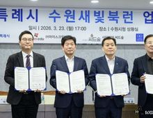 어웨이크뉴스 오경하 기자 | 수원특례시가 어린이·청소년 독서 문화를 확산하는 ‘수원새빛북런’ 사업을 추진한다. 수원시와 ㈜아이스크림에듀, (사)씨드(Seed)숲, 수원시서점협동조합은 23일 시청 상황실에서 ‘수원새빛북런(Book Learn) 업무협약’을 체결하고, 협력을 약속했다. 수원새빛북런은 민간의 우수한 독서교육 콘텐츠로 미래를 이끌어 갈 독서 인재를 키우는 사회공헌사업이다. 4~8월에 독서챌린지 앱·홈페이지에서 독서룰 인증하고, 독후감을 작성하는 ‘수원새빛북런 챌린지’를 진행한다. 9~10월에는 코스튬 퍼레이드, 성곽 걷기, 체험존 운영 등으로 진행되는 ‘수원새빛북런 데이’를 연다. 협약에 따라 수원시는 독서문화 확산을 위한 행정 지원을 하고, (사)씨드숲은 수원새빛북런 사업 운영을 총괄한다. ㈜아이스크림에듀는 독서 인증 챌린지 콘텐츠를 제공하고, 수원시서점협동조합은 지역 서점을 기반으로 한 독서문화프로그램·캠페인 등 독서 행사 개최에 협력한다. 이날 협약식에는 이재준 수원시장과 ㈜아이스크림에듀 대표, (사)씨드숲 사무총장, 수원시서점협동조합 이사장 등이 참석했다.