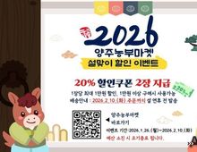 어웨이크뉴스 오경하 기자 | 양주시가 운영하는 양주시 농특산물 온라인 쇼핑몰 양주농부마켓에서 다가오는 설 명절을 맞아 고객들에게 특별한 혜택을 제공하고자 설맞이 할인 이벤트를 진행한다. 이번 이벤트는 1월 26일부터 2월 10일까지 진행하고, 기간 내 양주농부마켓 로그인 시 20% 할인쿠폰 2장이 자동 지급된다. 단, 예산 소진 시 조기 종료될 수 있다. 양주시 관계자는 “설 명절을 앞두고 시민들이 부담없이 풍성한 명절을 준비할 수 있도록 이번 이벤트를 마련했다”며 “양주시에서 생산한 품질 좋은 농축산물과 가공품 등 다양한 상품과 선물세트가 준비돼 있으니 많은 관심과 구매를 부탁드린다”고 말했다.