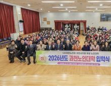 어웨이크뉴스 오경하 기자 | 과천시 노인대학 입학식이 지난 3일 과천시노인복지관 토리홀에서 열렸다. 과천시노인대학은 대한노인회 과천시지회에서 운영하는 평생학습 프로그램으로, 어르신들의 평생학습 기회를 확대하고 건강한 노후 생활을 지원하기 위한 것이다. 입학식을 시작으로 올해 12월까지 운영되며, 스포츠댄스, 민요, 가요교실, 하모니카, 요가 등 8개 강좌를 통해 어르신들에게 다양한 학습 기회를 제공한다. 이날 행사에는 신입생 200여 명을 비롯해 신계용 과천시장, 강신태 대한노인회 과천시지회장, 홍성문 노인대학장 등이 참석했다. 입학생들은 학생대표의 노인강령 낭독을 통해 배움에 임하는 자세를 다졌다. 한 어르신은 “나이가 들어서도 배움은 계속될 수 있고 함께할 수 있다는 점이 큰 용기가 된다”라며 “다양한 수업에 참여해 새로운 목표에 도전해 보고 싶다”라고 말했다. 신계용 과천시장은 “비록 이 프로그램의 이름은 노인대학이지만 활기찬 어르신들께서 함께하는 만큼 언제나 젊은 열정과 웃음이 가득한 ‘청춘대학’이 되기를 바란다”라며 “어르신의 평생학습 활동이 더욱 활성화 될 수 있게 지원해 나
