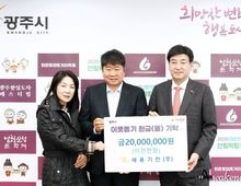 어웨이크뉴스 오경하 기자 | 세용기전㈜ 안승용 대표는 13일 설 명절을 맞아 지역 내 어려운 이웃을 위해 사용해 달라며 성금 2천만 원을 광주시에 기탁했다. 이번 성금은 명절을 앞두고 경제적 어려움을 겪는 취약계층 지원을 위해 마련됐으며 시는 관련 절차에 따라 도움이 필요한 가구에 배분할 계획이다. 안 대표는 “세용기전㈜은 단순한 일회성 지원이 아닌 ‘지속 가능한 나눔 실천’을 기업 경영의 핵심 가치로 삼고 있으며 이를 통해 사회적 신뢰와 상생의 문화를 확산시키고 있다”며 “기업의 성장은 지역사회와 함께 성장하는 것이 나눔의 진정한 의미인 만큼 앞으로도 사회공헌 활동을 펼치며 지역사회에 온기를 더하는 연대를 지속하겠다”고 말했다. 이에 대해 방세환 시장은 “지역사회를 위해 꾸준히 나눔을 실천해 주셔서 진심으로 감사드리며 이러한 지속적인 기부는 어려운 이웃들에게 큰 힘이 된다”며 “민관이 함께하는 나눔 문화가 안착될 수 있도록 시에서도 다양한 사회공헌 활동을 적극 지원하겠다”고 밝혔다. 한편, 세용기전㈜은 매년 설과 추석 명절마다 각 2천만 원씩 연간 4천만 원 규모의 성금을 기탁하는 등 지역사회 공