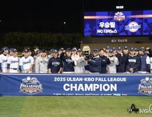 어웨이크뉴스 오경하 기자 | KBO가 주최하고 울산광역시와 문화체육관광부의 후원으로 개최된 ‘2025 울산-KBO Fall League’는 NC 다이노스의 우승으로 막을 내렸다. NC는 1일 울산 문수구장에서 열린 결승전에서 롯데 자이언츠를 12-1로 꺾고 대회 우승을 차지했다. 이로써 NC는 지난해 결승전에서 롯데에게 패한 아픔을 깨끗하게 설욕하며 대회 첫 우승의 영광을 안았다. NC는 2천만원의 우승 상금을 획득했고, 준우승팀 롯데는 1천만원의 상금을 받았다. ‘낙동강 더비’로 많은 관심을 모은 이날 결승전은 NC의 1회말 공격에서 사실상 승패가 결정됐다. 1회말 신재인의 적시타로 선취점을 올린 NC는 4번타자 오영수의 2루타로 2점을 더해 3-0으로 달아났다. NC는 계속된 찬스에서 김범준과 홍종표의 추가 적시타로 1회에만 6점을 득점했다. NC는 3회초 1점을 내줬지만 4회말 공격에서 밀어내기 볼넷과 사구로 다시 2점을 뽑았고, 경기 후반 김범준과 신재인의 적시타 등으로 4점을 더해 결국 12-1 대승을 거뒀다. 지난 9월 개최된 2026 KBO 신인 드래프트에서 1라운드 전체 2번으로 NC