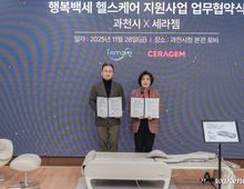 어웨이크뉴스 오경하 기자 | 과천시는 28일 시청 본관 1층에서 헬스케어 전문기업 ㈜세라젬과 ‘행복백세 헬스케어 지원사업’ 업무협약을 체결하고, 시민들이 일상 속에서 쉽고 편리하게 건강을 관리할 수 있는 환경 조성에 나선다고 밝혔다. 이번 사업은 세라젬의 공공기여를 통해 약 5억 2천만 원 규모의 헬스케어 장비를 관내 복지시설과 어린이집에 무상 지원하는 것으로, 과천시가 민간기업과의 협력을 바탕으로 추진하는 것이다. 협약식에는 신계용 과천시장과 김풍기 세라젬 상품제조부문장 등 관계자, 대한노인회 과천시지회, 과천시어린이집연합회 등 관련 단체장이 참석했다. 협약에 따라 시와 세라젬은 앞으로 5년간 ‘행복백세 헬스케어 지원사업’을 함께 운영한다. 세라젬은 과천지식정보타운 4-3블록 입주기업으로, 용지매매계약 체결 시 약속한 공공기여를 이번 사업을 통해 지역사회에 실질적인 도움이 되는 복지사업으로 환원한다. 과천시는 장비 설치와 운영이 원활히 이루어지도록 행정 지원을 맡는다. 세라젬은 척추 관리 의료기기 41대, 안마가전 4대, 로봇청소기 109대, 디지털 건강 측정기기 38세트를 노인복지관, 경로당,