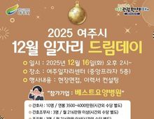 어웨이크뉴스 오경하 기자 | 여주시는 오는 12월 16일 오후 2시 여주일자리센터(세종로 14번길 18, 중앙프라자 5층)에서 ‘2025년 마지막 여주시 일자리드림데이’를 연다. 이번 행사는 가남읍에 있는 베스트요양병원이 참여해 간호사 10명, 간호조무사 3명, 물리치료사 1명, 조리원 3명, 환경미화원 1명 총 18명을 채용한다. 지원 자격은 간호사·간호조무사 자격소지자, 신경발달치료(NDT)와 보바스(BOBATH) 교육을 이수한 물리치료사 등이다. 올해 마지막 행사인 이번 일자리드림데이는 의료 돌봄 분야의 채용이 이뤄져 지역 사회의 안정적인 돌봄 인력 확보에도 도움이 될 것으로 보인다. 시 관계자는 “2025년 동안 일자리드림데이에 참여해 준 모든 관내 기업체와 구직자에게 감사한 마음을 전한다”라며, “올해 마지막 행사에서도 구직자가 따뜻한 연말을 보낼 수 있도록 최선을 다하겠다”라고 말했다
