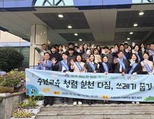 어웨이크뉴스 오경하 기자 | 경기도수원교육지원청은 10월 13일, 매월 추진 중인 청렴 캠페인의 일환으로 전 부서가 함께하는 ‘청렴 실천 다짐 쓰레기 줍깅 데이’를 실시했다. 이번 행사는 소속 직원들의 청렴 의식을 높이고 동료 간 협력적 조직 문화 형성과 더불어 시민들에게 청렴의 가치를 확산하여 신뢰받는 수원교육 실현에 기여하고자 마련됐다. 이날 수원교육지원청 직원들은 수원천과 수원화성 용연 일대에서 걸으며 쓰레기를 줍는 ‘줍깅’ 활동을 전개했다. 이와 함께 청렴 콘텐츠가 게시되는 수원교육지원청 공식 소셜미디어(인스타그램, 유튜브)의 QR코드를 새겨 제작한 장바구니를 시민들에게 배부하며 환경 보호의 의미와 청렴 실천 의지를 함께 알렸다. 더불어, 수원교육지원청은 행사와 연계하여‘명절 선물 관련 금품수수 금지’를 주제로 '10월 수원 청렴길잡이 소식지'를 제작했다. 이 소식지는 관내 각급 학교에 배포되어 명절 기간 공직 비위 예방에 힘쓸 수 있도록 안내 자료로 활용될 예정이다. 수원교육지원청 김선경 교육장은 “청렴은 공직자가 반드시 지켜야 할 기본 덕목이자 교육행정의 신뢰를 지탱하는 핵심 가치”이며,
