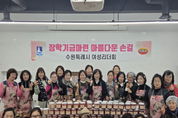 어웨이크뉴스 오경하 기자 | 수원시여성리더회가 5일 행궁동 어울림센터 공용주방에서 ‘장학기금 마련 젓갈 포장 행사’를 열었다. 김미애 수원시여성리더회 총회장과 이지영 수원시여성단체협의회 명예회장 등 회원 20여 명이 참여해 명란젓과 낙지젓 등 4종의 젓갈을 소포장해 판매했다. 수익금은 장학금으로 기부할 예정이다. 김미애 총회장은 “장학기금 마련에 동참해 주신 모든 분께 감사드린다”며 “이번 행사가 학생들의 미래를 응원하는, 작은 힘이 되길 바란다”고 말했다. ‘수원시 여성지도자대학’ 수료생으로 구성된 수원시여성리더회는 2004년 출범 이후 한부모가정 지원, 저소득 중·고등학생 장학금 후원, 복지관 중식 봉사, 소외계층 김장 봉사, 헌혈 캠페인 등 지역사회를 위한 나눔·봉사 활동을 꾸준히 하고 있다.