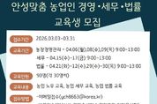 어웨이크뉴스 오경하 기자 | 안성시농업기술센터가 지역 농업인의 안정적인 영농 활동을 돕기 위해 오는 31일까지 ‘안성맞춤 농업인 경영·세무·법률 교육’ 교육생을 모집한다. 이번 교육은 전문가 특강을 통해 농가 운영 중 발생할 수 있는 경영적, 법적 문제를 사전에 예방하고 해결할 수 있는 역량을 키워주기 위해 마련됐다. 교육은 오는 4월 6일부터 30일까지 주제별 지정된 날짜에 진행된다. 모집 분야는 ▲농업 경영 ▲농업 세무 ▲농업 법률 등 3개 과정이며, 분야별로 30명씩 총 90명을 선발한다. 신청 인원이 초과할 경우 내부 선발 기준에 따라 교육생을 최종 선정할 예정이다. 신청 자격은 농업 경영에 관심 있는 안성시민이라면 누구나 가능하며, 접수는 3월 31일까지다. 참여를 희망하는 시민은 이메일을 보내거나 농업기술센터 농업지도과(보개원삼로 219)를 방문해 신청하면 된다. 시 관계자는 “농업인의 눈높이에 맞춘 경영·법률·세무 전문가 특강이 농가 역량을 강화하는 좋은 기회가 될 것”이라며, “안성 농업의 내실을 다지고 싶은 시민 여러분의 많은 관심과 참여를 바란다”고 말했다.
