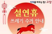 어웨이크뉴스 오경하 기자 | 고양특례시는 설 연휴를 앞두고 시민들이 깨끗하고 쾌적한 환경에서 명절을 보낼 수 있도록 ‘설 연휴 생활쓰레기 관리대책’을 마련하고 비상 대응체계를 운영한다. 연휴 기간인 2월 14일부터 18일까지 시는 상황반과 기동청소반을 운영해 쓰레기 관련 민원과 긴급 상황에 신속히 대응한다. 특히 연휴 중 무단 방치된 쓰레기는 발견 즉시 수거해 시민 불편이 발생하지 않도록 할 계획이다. 또한 상습 무단투기 지역을 집중 점검하고 단속을 병행하는 한편, 올바른 쓰레기 배출 방법과 배출일 준수에 대한 홍보도 강화한다. 다만 2월 15일부터 17일까지는 수거업체 휴무로 생활쓰레기 수거가 진행되지 않는다. 시 관계자는“연휴 기간 배출일을 지키지 않을 경우 쓰레기가 장기간 방치될 수 있어 시민들의 협조가 무엇보다 중요하다”며, “쓰레기는 반드시 수거일 전날 일몰 이후에 배출해 달라”고 당부했다. 이어“시민 여러분께서도 음식물쓰레기 줄이기와 재활용품 분리배출에 적극 동참해 주시면 더욱 깨끗한 명절을 보낼 수 있을 것”이라고 강조했다. 시는 앞으로도 시민 생활과 밀접한 청