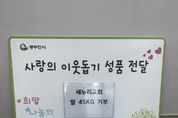 어웨이크뉴스 오경하 기자 | 동두천시 불현동 새누리교회는 11월 3일 불현동 행정복지센터에 백미 45kg을 전달했다고 밝혔다. 새누리교회는 불현동에 위치한 개신교 교단으로, 매년 나눔을 실천하며 지역사회에 따뜻한 온정을 나누고 있다. 민경엽 담임목사는 “지역의 소외된 이웃들이 추운 겨울 따뜻한 연말을 보낼 수 있길 바란다”며 “작은 정성이지만 도움이 됐으면 좋겠다”라고 전했다. 김영미 불현동장은 “지역사회를 위해 꾸준히 나눔을 실천해 주신 데 감사드리며, 후원해 주신 백미는 도움이 필요한 취약계층에 소중히 전달하겠다”라고 말했다.