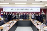 어웨이크뉴스 오경하 기자 | 양주시는 지난 19일 스마트도시사업 협의회를 구성하고 위촉식 및 회의를 개최했다. 이번 위촉식은 강수현 양주시장이 참석해 주관했으며, 회의에는 위원장인 김정일 부시장을 비롯해 관련 부서장, 시의회 의원, 양주경찰서 등 유관기관 관계자, 관련분야 전문가, 지역시민, 사업시행사 관계자 등이 참석했다. 협의회는 ▲스마트도시 사업계획 및 실시계획 ▲스마트도시기반시설의 관리·운영 및 재정확보 방안 ▲스마트도시기반시설의 인수인계 ▲그 밖에 원활한 추진을 위한 사항 등을 협의하는 역할을 맡는다. 이날 회의는 한국토지주택공사(LH)양주사업본부(이하 ‘시행사’)가 추진하는 회천지구(3단계) 스마트도시사업 시행계획 심의를 안건으로 진행됐으며, 시행사의 시행계획안 발표와 위원들과의 질의응답이 이어졌다. 위원들은 해당 안건에 대하여 ▲최신 정보통신기술(ICT)을 활용한 시민 체감형 서비스 구현 ▲기존 구축된 스마트도시 서비스와의 유기적인 연계 ▲지속가능한 시민생활 편의성과 안전성 확보 ▲사업일정 준수 등 내실있는 사업이 추진될 수 있도록 다양한 의견을 제시했다. 2025년 12월