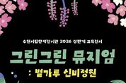 어웨이크뉴스 오경하 기자 | 경기도 수원시립미술관은 자연과의 관계를 성찰하고 생태적 가치를 체험하는 참여형 교육전시 《그린그린 뮤지엄 : 별가루 신비정원》을 3월 24일부터 7월 24일까지 수원시립만석전시관에서 개최한다. 《그린그린 뮤지엄》은‘자연과의 눈맞춤’을 주제로 자연의 초록(Green) 빛을 예술로 그려낸다(Drawing)는 중의적 의미를 담아 연간으로 운영된다. 2026년 상ㆍ하반기 두 차례에 걸쳐 운영되며, 상반기 1부 전시는《그린그린 뮤지엄: 별가루 신비정원》에 이어 하반기에는 새로운 주제의 2부 전시가 이어질 예정이다. 이번 전시는 회화 작가 진영(b.1982)과 설치, 사운드 등 융복합 작업을 선보이는 팀 아르테코(est.2023, 설혜린, 이소희, 김창수, 드림스케이프)가 참여한다. 전시는 총 20점의 작품으로 구성되며, 두 개의 섹션을 통해 자연을 감각하고 사유하는 경험을 제공한다. 첫 번째 섹션 '어두운 밤, 숲의 이야기'는 앵무새를 매개로 숲의 서사를 그려내는 작가 진영의 작품을 소개한다. 클로드 모네의 '수련이 있는 연'을 오마주한 작업 '사이 02'(2024)는 도시 속 유일한 쉼의
