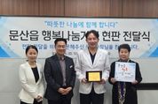어웨이크뉴스 오경하 기자 | 파주시 문산읍은 지난 10일, 14년간 지역 내 독거어르신 등 취약계층을 위해 꾸준한 나눔을 실천해 온 ‘센트럴제일안과’를 문산읍 행복나눔가게 15호점으로 지정하고 현판 및 감사패를 전달했다. 행복나눔가게 사업은 지역 내 사업체가 정기적인 기부를 통해 취약계층을 지원하는 문산읍의 민관 협력 나눔 사업이다. 이번 15호점 지정은 오랜 기간 이어진 각별한 인연과 순수한 나눔의 뜻이 더해져 지역사회에 큰 감동을 전하고 있다. 장기 후원의 배경에는 임동권 대표원장의 남다른 지역 사랑이 자리하고 있다. 임 원장은 과거 문산제일안과 원장으로 재직하며 2016년부터 2020년까지 문산읍 지역사회보장협의체 위원으로 활동했고, 지역 내 복지 사각지대 발굴에 앞장섰다. 현장에서 직접 마주한 독거어르신들의 어려운 현실을 깊이 이해한 그는, 운정으로 이전해 거리가 멀어졌음에도 후원을 멈추지 않았다. 임 원장은 2012년 6월부터 현재까지 14년간 매월 햄·참치 선물 꾸러미 등 식료품을 정기적으로 후원해 왔으며, 누적 후원 수량은 1만여 개에 달한다. 임동권 센트럴제일안과 대표원장은 “문산제일안과 시절 문