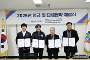 어웨이크뉴스 오경하 기자 | 여주도시공사와 민주노총 공공운수노조 여주도시공사지회는 12월 9일 여주도시공사 사옥에서 2025년 임금 및 단체협약 체결식을 개최했다고 밝혔다. 이번 협약은 상호 신뢰와 존중을 바탕으로 진행된 성실한 교섭의 결실로, 노사 상생과 지속 가능한 발전을 위한 중요한 발판이 될 전망이다. 공사와 노동조합은 이번 협약을 통해 직원들이 안정적인 근무여건 아래 역량을 발휘할 수 있는 환경을 조성하고, 공공기관으로서 사회적 책임을 다하기 위한 제도 개선과 협력 체계를 강화해 나갈 방침이다. 임명진 사장은 “이번 임금·단체협약은 노사 간 소통과 이해를 바탕으로 이루어낸 결실”이라며, “앞으로도 신뢰 기반의 노사 협력을 통해 시민에게 더 나은 공공서비스를 제공할 수 있도록 노력하겠다"고 밝혔다. 여주도시공사는 앞으로도 합리적인 노사관계 정착을 위해 소통과 협력을 강화하고, 시민 중심의 공기업으로서 책임과 역할을 다하기 위한 다양한 노력을 이어갈 계획이다.