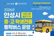 어웨이크뉴스 오경하 기자 | 안성시는 대중교통 이용이 불편한 지역 중·고등학생들의 안전하고 편리한 등·하교 환경 조성을 위해 학생전용 통학버스 ‘안(安)녕(YOUNG)버스’를 오는 3월 30일부터 본격 운행한다고 밝혔다. ‘안(安)녕(YOUNG)버스’는 ‘안성(安)’과 ‘젊음(YOUNG)’, 그리고 ‘밝은 인사(안녕)’의 의미를 담은 명칭으로, 학생들이 아침마다 밝고 안전하게 등교할 수 있도록 지원하는 데 목적이 있다. 이번 사업은 안성시와 경기도안성교육지원청이 공동으로 추진하는 협력사업으로, 관내 대중교통 불편지역 중·고등학생을 대상으로 운영된다. 총 5개 노선에 버스 7대를 투입하여 13개 학교 학생들이 공동으로 이용할 수 있도록 했다. 특히 학교별·요일별 수업 종료시간이 상이한 점을 반영하여 하교 시간대를 다양화하는 등 실질적인 통학 수요를 반영한 맞춤형 운행체계를 구축했다. 이를 통해 학생들의 대기시간을 줄이고 보다 효율적인 통학 환경을 제공할 계획이다. 이용요금은 안성시 시내버스 청소년 요금과 동일하게 적용되며, 환승 할인도 가능하다. 다만 학생 본인 명의의 교통카드를 사용해야 하며, 보호