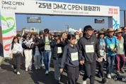 어웨이크뉴스 오경하 기자 | 경기도 파주 임진각 평화누리 일원에서 비무장지대(DMZ) 일원을 걷고 달리며 생태·평화·역사의 가치를 몸으로 느끼는 이틀간의 축제가 펼쳐졌다. DMZ OPEN 페스티벌(Festival)의 대표 스포츠 프로그램으로 1일에는 ‘2025 DMZ OPEN 평화걷기’가 2일에는 ‘2025 DMZ OPEN 평화 마라톤’이 개최됐다. 첫째 날 진행된 ‘DMZ 평화 걷기’는 민통선 내 임진강변 생태탐방로를 따라 걸으며 생태적 가치와 평화의 의미를 직접 체험하는 행사로, 올해는 야니스 베르진슈(Janis Berzins) 주한 라트비아 대사를 비롯해 13개국 주한 외국대사, 독립유공자 후손, 최재천 D.O.F.조직위원장 등 약 1,500여 명이 함께했다. 개막식에서는 경기도 홍보대사로서 활동중인 김규리를 비롯한 참가자 대표 6명이 무대 앞에서 릴레이 형식으로 평화 메시지를 낭독할 때마다, 참가자 전원이 “DMZ는 평화다”라고 화답하는 도민 참여 이벤트가 펼쳐져 현장의 열기를 더했다. 이어 김대순 행정2부지사의 힘찬 타고(타북)로 평화를 기원하며 걷기를 시작했다. 참가자들은 DMZ 내 서식