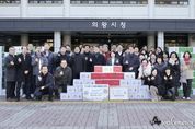 어웨이크뉴스 오경하 기자 | 의왕시가 새중앙교회로부터 크리스마스를 맞아 어려운 이웃을 돕기 위한 생필품 꾸러미 ‘사랑의 천사박스’ 1,004상자(약 4,000만 원 상당)를 기부받았다고 밝혔다. 시청 본관 앞 광장에서 열린 전달식에는 새중앙교회 황덕영 담임목사와 나문성·박재관 목사, 이칠수·신종범·김경화 장로 등 새중앙교회 관계자들이 참석해 따뜻한 나눔의 뜻을 함께했다. 새중앙교회 황덕영 담임목사는“크리스마스를 맞아 소외된 이웃들에게 사랑을 전하고자 하는 성도들의 마음을 모아 사랑의 천사박스를 준비했다”며“이 작은 정성이 어려운 이웃들에게 위로가 되고, 따뜻한 겨울을 보내는 데 도움이 되기를 바란다”고 말했다. 방경미 복지문화국장은“해마다 변함없이 나눔을 실천해 주시는 새중앙교회와 성도 여러분께 깊이 감사드린다”며“시에서도 소외되는 이웃이 없도록 지역사회를 더욱 세심하게 살피고, 촘촘한 복지 지원에 최선을 다하겠다”고 밝혔다. 한편, 이날 기부된 생필품 꾸러미는 경기사회복지공동모금회에 기탁 처리된 후, 관내 저소득층 가구에 전달될 예정이다.