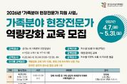 어웨이크뉴스 오경하 기자 | 경기도여성가족재단은 4~6월 총 5회에 걸쳐 경기도 내 가족분야 전문상담사 250명을 대상으로 가족분야 현장전문가 역량강화 교육을 실시한다. 이번 교육은 가족분야 상담을 필요로 하는 경기도민에게 보다 전문적이고 다양한 영역의 상담서비스를 제공할 수 있도록, 현장에서 활동하는 상담사의 실천 역량을 강화하기 위해 마련됐다. 최근 가족분야 상담 현장에서 중요성이 커지고 있는 우울·자살 위험, 중독, 은둔·고립, 장애·입양 등 다양한 유형별 특성과 주요 이슈에 대한 이해 및 상담사례 등으로 현장에서 곧바로 적용할 수 있도록 프로그램을 구성했다. 모집대상은 경기도 내 가족분야 전문상담사이며, 교육은 차수별 50명 내외로 총 5차에 걸쳐 운영된다. 신청기간은 4월 7일부터 5월 31일까지이며, 재단 누리집을 통해 차수별로 선착순 모집한다. 김혜순 재단 대표이사는 “이번 역량강화교육은 도내에서 활동하는 가족분야 전문상담사들의 상담 현장 대응력과 전문성 제고를 위해 기획한 것”이라면서 “가족분야 현장전문가들과 함께 할 수 있는 사업을 마련하겠다”고 말했다.