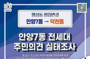 어웨이크뉴스 오경하 기자 | 행정동 명칭 변경 사업을 추진 중인 안양시가 만안구 안양7동의 행정동 명칭 변경을 위해 올해 12월 1일부터 내년 1월 31일까지 해당 동 전 세대를 대상으로 주민의견 실태조사를 실시한다고 1일 밝혔다. 이번 주민의견 실태조사는 안양7동의 행정동 명칭을 ‘덕천동’으로 변경하는 것에 대한 찬반 의견 조사다. 안양7동에 거주하는 전체 세대 중 60% 이상이 참여하고, 참여 세대의 과반수가 찬성할 경우 시는 명칭 변경을 추진할 예정이다. 조사방법은 올해 12월 1일부터 2026년 1월 31일까지 시 홈페이지를 통해 비대면 조사를 진행하고, 12월 18일부터 2026년 1월 31일까지 안양7동 행정동명칭변경추진위원회가 각 세대 방문조사를 병행하게 된다. 덕천(德泉)동은 어린이들이 샘물 솟듯이 씩씩하게 자라서 나라에 큰 일꾼이 되기를 바라는 뜻으로, 큰 덕(德)에 샘 천(泉)을 취해 붙여진 옛 지명이다. 시는 이에 앞서 지난 9월 12일부터 9월 30일까지 안양7동 주민들을 대상으로 행정동 명칭에 대한 선호도 조사를 진행했고, 조사에 참여한 646세대의 주민 중 52